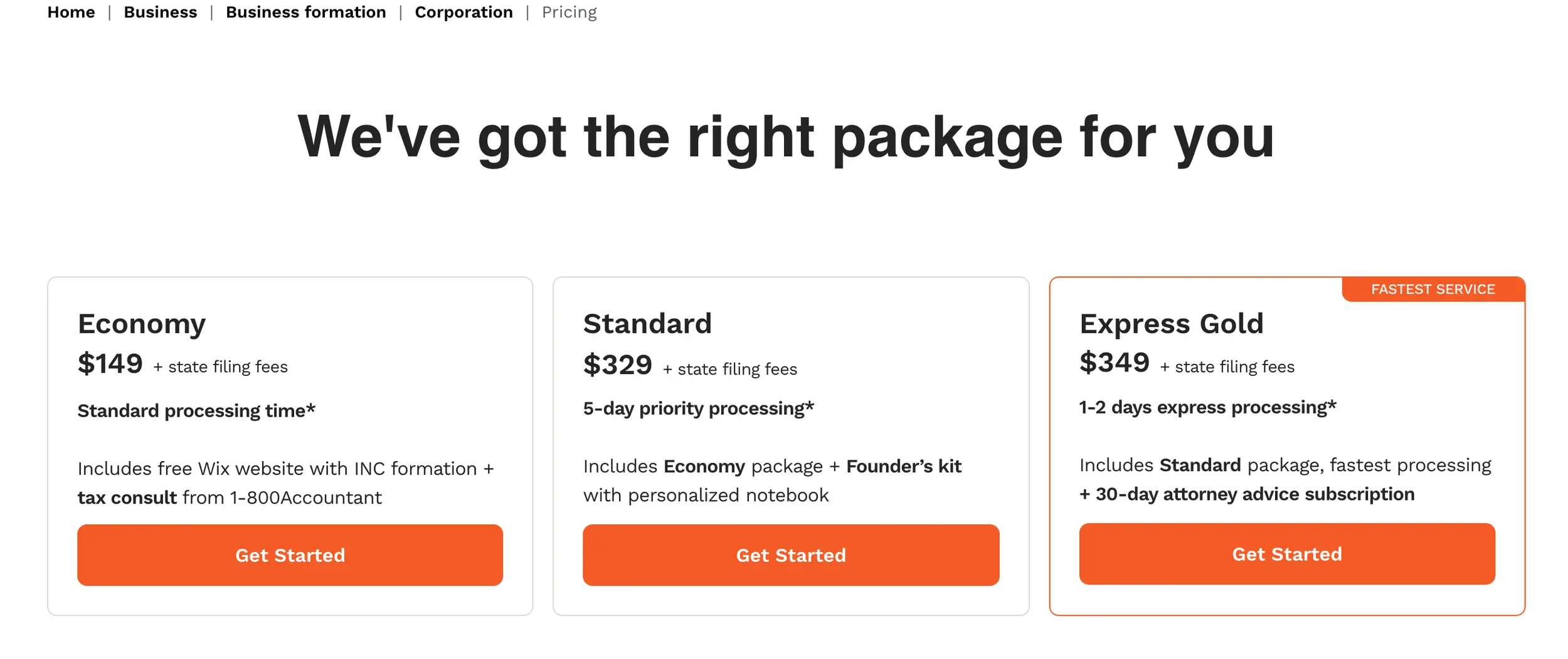 So instead of hiring a local attorney upfront, you can start with a fixed package price, then add what you need.